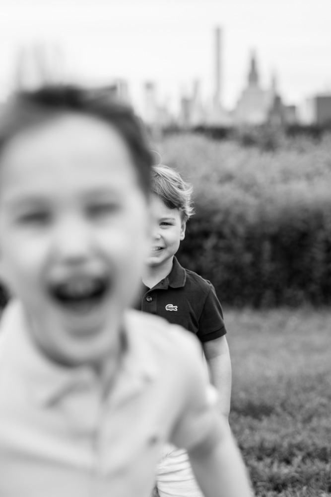 BW photo of two brothers, one out of focus in the front and one in focus in the back