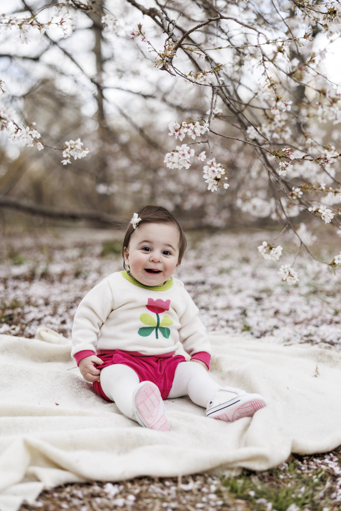 little girl sitting on blanket under cherry tree at cherry hill in central park in new york